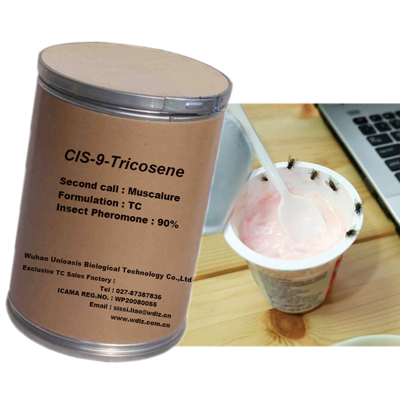 Η Z-9-Tricosene είναι μια φερομόνη φύλου που παράγεται από θηλυκές οικιακές μύγες (Musca domestica) για να προσελκύσουν τα αρσενικά. Στις μέλισσες, είναι μία από τις φερομόνες επικοινωνίας που απελευθερώνονται κατά τη διάρκεια του χορού waggle. Αυτό το προϊόν είναι μια φερομόνη εντόμων που συντίθεται από την εταιρεία μας χρησιμοποιώντας μια μέθοδο χημικής σύνθεσης. Έχει καλό ελκυστικό αποτέλεσμα σε κατσαρίδες και μύγες. Μπορεί να βελτιώσει την εντομοκτόνο αποτελεσματικότητα των εντομοκτόνων όταν χρησιμοποιείται σε συνδυασμό με εντομοκτόνα. Αυτό το προϊόν χρησιμοποιείται μόνο ως ελκυστικό σε εντομοκτόνα.